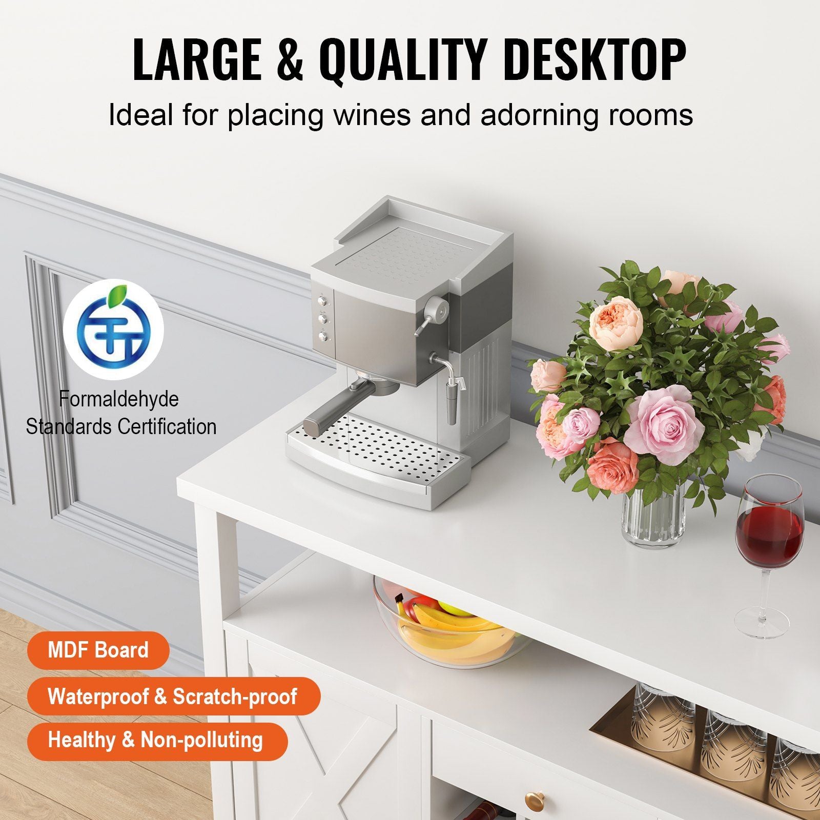 VEVOR 55 Inch Industrial Bar Cabinet, Wine Table for Liquor and Glasses, Sideboard Buffet Cabinet with Wine Rack, Freestanding Farmhouse Wood Coffee Bar Cabinet for Living Room, Home Bar, and Kitchen