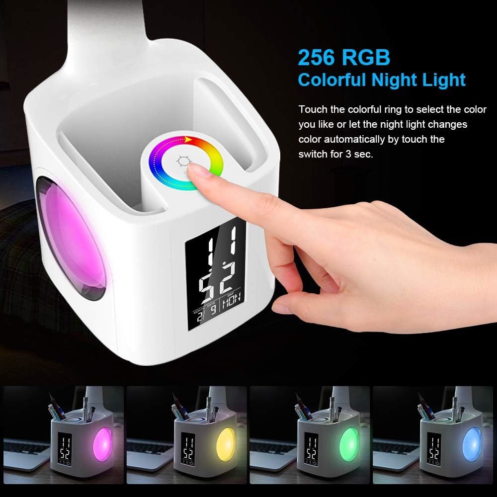 LED Desk Lamp with USB Charging Port& Study Light with Clock
